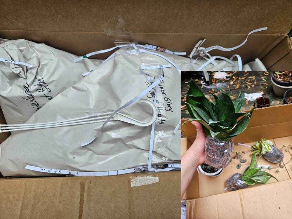 Plants are shipped bare root, without pots. Upon arrival, plants should be potted, watered and exposed to indirect sunlight based on the plant's needs.